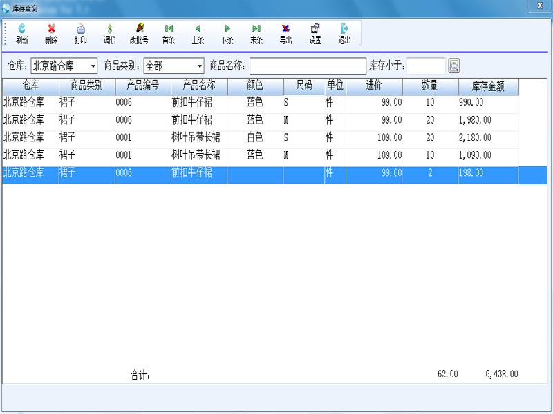 庫存查詢界面,可以根據授權查詢每一個分店的庫存,方便調貨