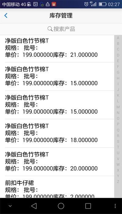 手機庫存查詢界面,可以實時查詢庫存情況